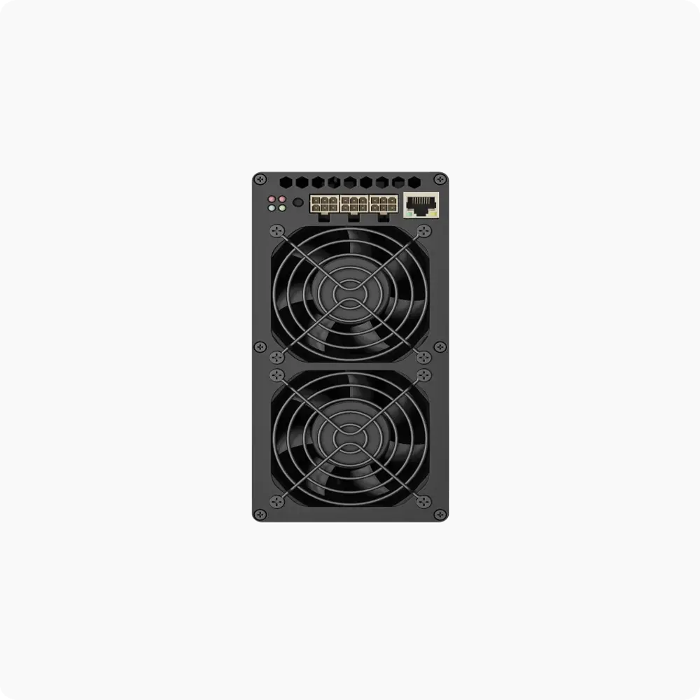Goldshell AE Box II, optimized for the zkSNARK mining algorithm from Goldshell, comes with a maximum hash rate of 54MH/s for a power consumption of 530W. With an efficient air cooling system, AE Box II dissipates heat effectively, preventing machine overheating while aiding an excellent energy efficiency of 9.81 j/Mh.